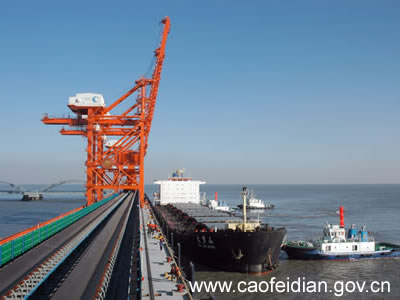 位于曹妃甸甸头,主要是接卸进口铁矿石,满足华北地区钢铁企业对原材料的需求。一期建设两个25万吨级泊位,年接卸能力3000万吨。2005年12月16日正式向国际通航,2006年共接卸铁矿石1104万吨。今年第一季度已接卸矿石518万吨,2007年计划完成1600万吨。