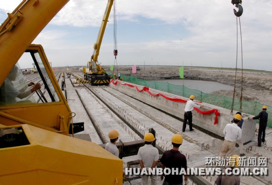 环渤海新闻网消息(杨宝华、徐慧)8月15日下午,随着曹妃甸2号电厂排水渠桥最后一片梁的成功吊装,曹妃甸进岛第二条主要通道第二合同段率先实现贯通(如图)。至此,曹妃甸新建城市主干道工程又迈上了新的台阶。