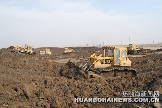 目前,唐海县临港产业园区内主排水渠道六排支清淤工程已经全面开工,各种大型施工机械在施工现场轰鸣,整个现场一片热火朝天的景象。