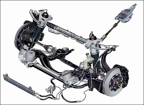 从后悬架来看,新帕萨特隐约可以看到独立悬架的影子(注意同后轮连接的下摆臂)
