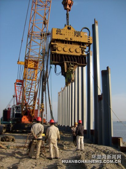 图为沉桩现场。李响 赵连军 张力伟 摄