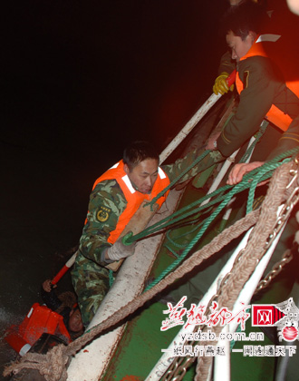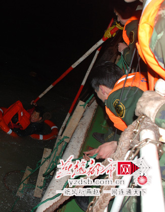 昨日凌晨,经过3个多小时的艰难海上营救,河北海警二大队官兵终将船沉落海的4名遇险船员成功救出。
