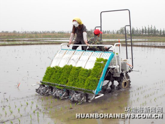 “以前的人工插秧效率太低、费用还高,今年我用上了插秧机,省时省力还省钱!”农工李茂才望着刚插好的秧苗乐呵呵地说。今年,作为国家级机械育插秧示范项目县,唐山市唐海县28万亩水稻机械化插秧率达50%。这县在推广农业机械化生产过程中,加大惠农政策扶持力度,在省市对农用机械补贴30%的基础上,县财政每台再补贴20%,今年农工新购置插秧机332台。 丹平 王倩摄
