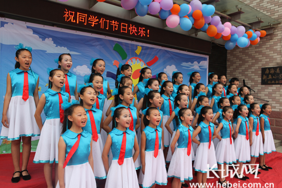 长城网唐山6月1日电(郑永春 艾顺军 张明月)6月1日,唐海县新立小学校园里一大早就洋溢着孩子们的欢声笑语,300多名外来务工人员子女和城里的孩子们一样,载歌载舞度过了一个快乐的儿童节。