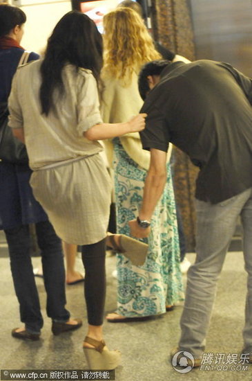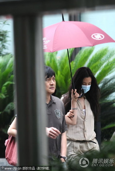 腾讯娱乐讯上海,近日李冰冰与导演张扬等人离开酒店。李冰冰戴着口罩走在人群最后面,由于天空突然飘起小雨,走在最前面的工作人员打起雨伞。在身旁的外籍评委以为是帮他们撑伞,却见工作人员往后走到李冰冰身边打起伞,纷纷回头显得很无奈。走到影院门口等电梯时,李冰冰突然金鸡独立晾起鞋底,手还拉着张扬的衣服。张扬还用手在李冰冰鞋子处,然后与李冰冰比划什么。