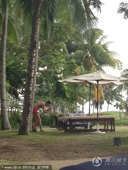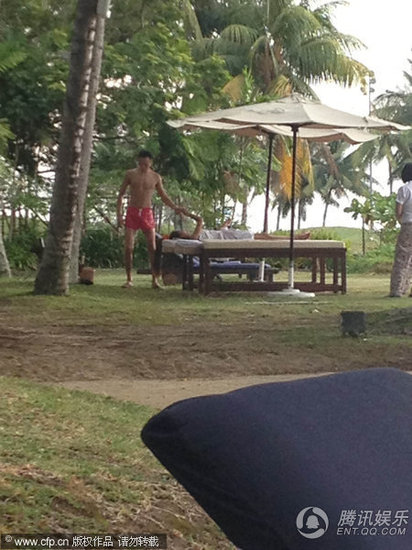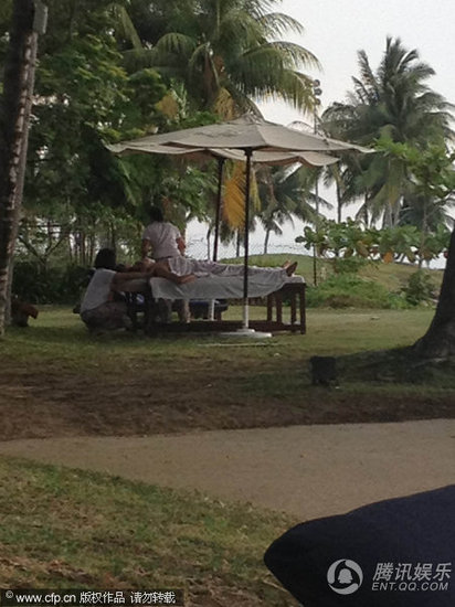 演员高虎携美女海边度假 沙滩推油按摩显暧昧