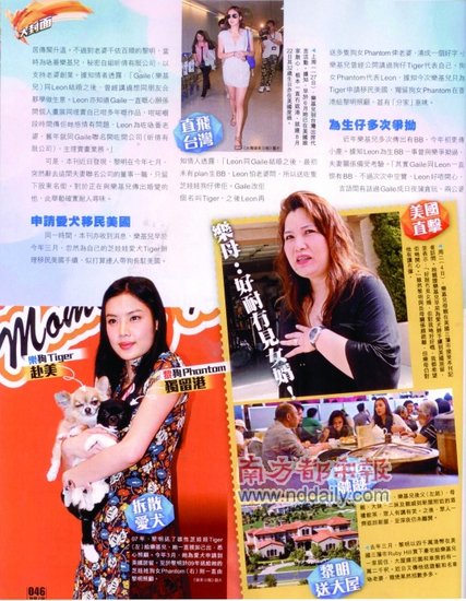 此外,该周刊还表示,他们收到了可靠消息,乐基儿今年3月秘密为自己的爱犬T iger办理申请移民美国手续,而黎明送给她的另外一只小狗Phantom则无份移民,甚有“分家”意味。小狗移民美国的事情,已经得到乐基儿妈妈的承认。