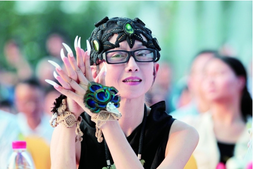 腾讯娱乐讯据青年时报报道,都说杨丽萍很会穿衣服,此话一点也不假。尽管54岁的她无法抵挡岁月的痕迹,但是乐观的心态和对民族对自然的热爱,依然让她每次亮相都成为绝对的主角。高耸的马尾辫,黑色的长裙,手腕两侧别出心裁地扣上两瓣孔雀羽毛,昨天下午,当一身黑色民族风装扮的杨丽萍和一身橘色裙装的萨顶顶(微博)亮相杭州西溪时,绿树丛中仿佛开出了两朵娇艳的美人蕉。看见她的人都忍不住感慨:杨老师怎么那么瘦,她的脸,真的只有巴掌大!