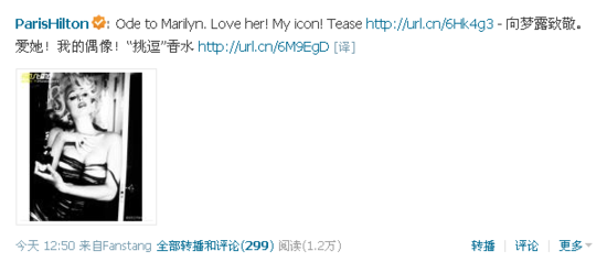 希尔顿发微博向玛丽莲·梦露致敬