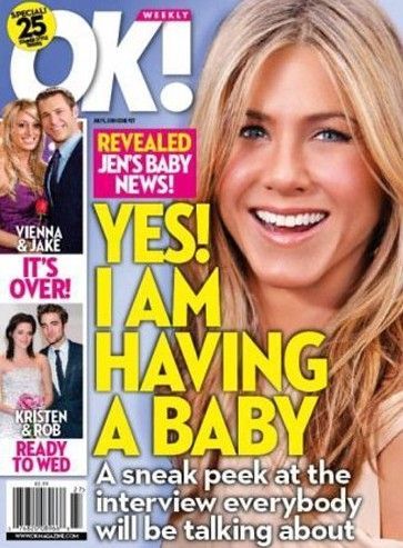 詹妮弗·安妮斯顿与男友贾斯汀·塞洛克斯在今年8月正式订婚,二人计划明年情人节举办婚礼。两个人刚订婚,就有媒体报道安妮斯顿已经怀孕,但她的经纪人多次否认。据著名杂志《OK!》的最新报道,安妮斯顿不但已经怀孕,而且极有可能怀得是双胞胎。