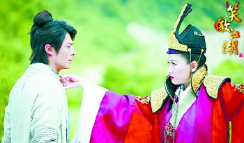 陈:这还不算啥呢,任盈盈跟叔叔辈的东方不败一起抢令狐冲,上演暧昧纠结的三角恋,想起来岂不更是令人咂舌。这《笑傲江湖》意在江湖,儿女情长理应是碟甜点,是锦上添花的那一笔。于正虽然声称这部戏中的感情戏只占四分之一,但搞出这么多噱头,无疑把感情戏当成了主菜,把“琼瑶”与“金庸”嫁接到一起,不知道金庸老爷子看后作何感想啊。