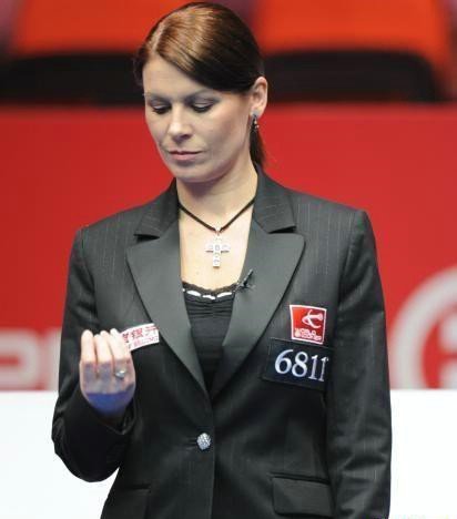 米卡拉-塔布向来有斯诺克裁判界第一夫人的称号,2001年她便成为第一位执法世锦赛的女裁判,多年来她一直是这一行中最耀眼的明星。然而在成为裁判之前,塔布其实是一名不错的女子花式9球选手,甚至还夺过冠。