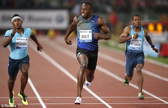 北京时间6月7日凌晨,2013年国际田联钻石联赛罗马站男子100米飞人大战,雅典奥运冠军美国名将加特林以9秒94夺冠。牙买加闪电博尔特以0.01秒差距屈居亚军,这是博尔特国际重大赛事两年来首败。