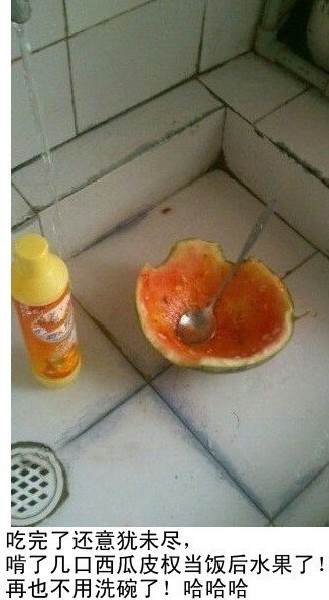 长的帅屌丝还有资本高调,更多的屌丝只能像下面这位一样,低调的华丽着。一瓢西瓜,盛的都是热泪……