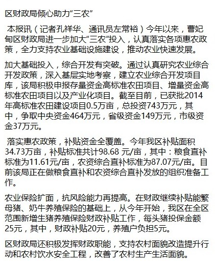 区财政局倾心助力“三农”