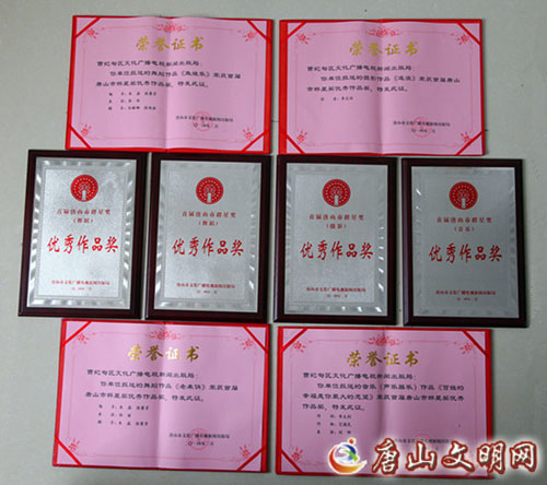 舞蹈作品《鱼娃乐》、《老来俏》,音乐作品《百姓的幸福是你最大的愿望》,摄影作品《逐浪》在众多入选作品中脱颖而出,荣获唐山市首届“群星奖”优秀作品奖。