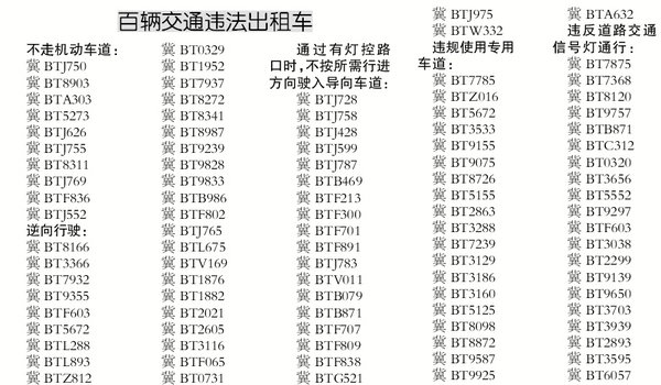环渤海新闻网消息 出租车为市民出行带来了很大便利,然而一些驾驶人为了多拉快跑,无视交通法律法规,随意行驶,存在极大的交通安全隐患。10月11日,市公安交警支队特曝光了百辆存在交通违法行为的出租车。