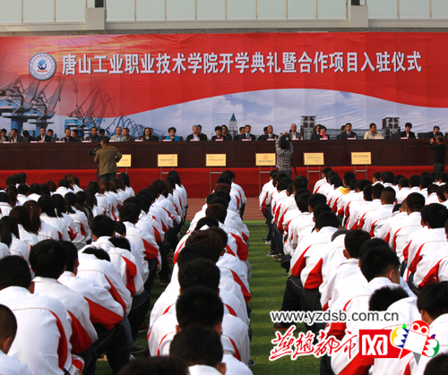 10月10日,在唐山工业职业技术学院的新校园内,教堂般的尖顶建筑及其做旧后的深红色外墙正散发着静谧却浓烈的学院气息,让人恍如身在一所历史悠远的艺术院校。7500多名学生在新奇与兴奋中整装列队,迎接他们在新校园的第一个开学典礼。
