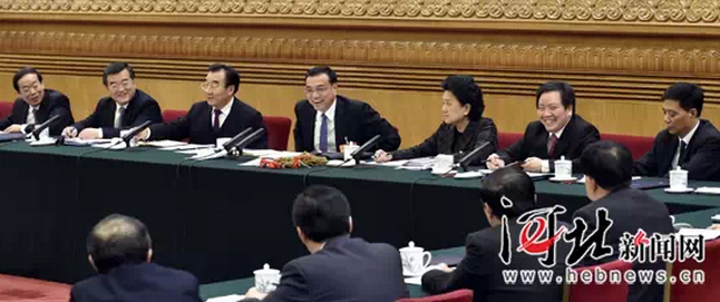 3月7日下午,中共中央政治局常委、国务院总理李克强来到人民大会堂东大厅,参加十二届全国人大三次会议河北代表团审议。