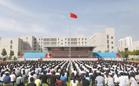 9月8日上午,在南堡开发区庆祝教师节暨南堡开发区实验中学落成启用仪式上,伴随着昂扬、雄壮的《义勇军进行曲》,鲜艳的五星红旗冉冉升起——这是南堡开发区实验中学的第一次升旗仪式,在场领导及1000多名师生起立向国旗行注目礼。