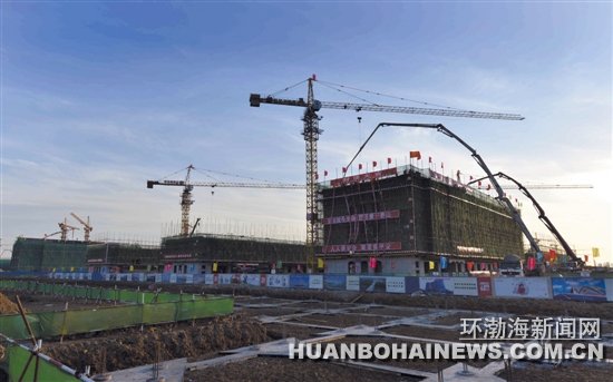 4月18日,北京曹妃甸国际职教城建筑工地一片欢腾。由中国中铁航空港建设集团有限公司承建的H-2宿舍楼和中国铁建十六局集团有限公司承建的H-11宿舍楼率先封顶。从2月21日启动桩基施工到4月18日楼房主体结构完成,只用了短短58天的时间,这标志着北京曹妃甸国际职教城工程进入二次结构施工阶段。