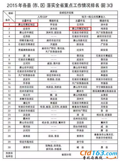 2015年,曹妃甸区在全省各县(市、区)落实全省重点工作情况排名中,人均GDP第一!地方一般公共预算收入第二!