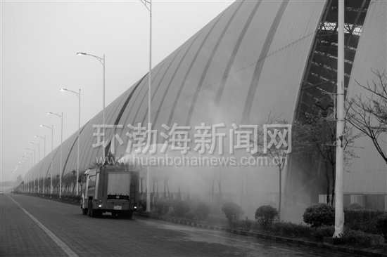 图为公司喷淋车在厂区实施常态化抑尘作业。